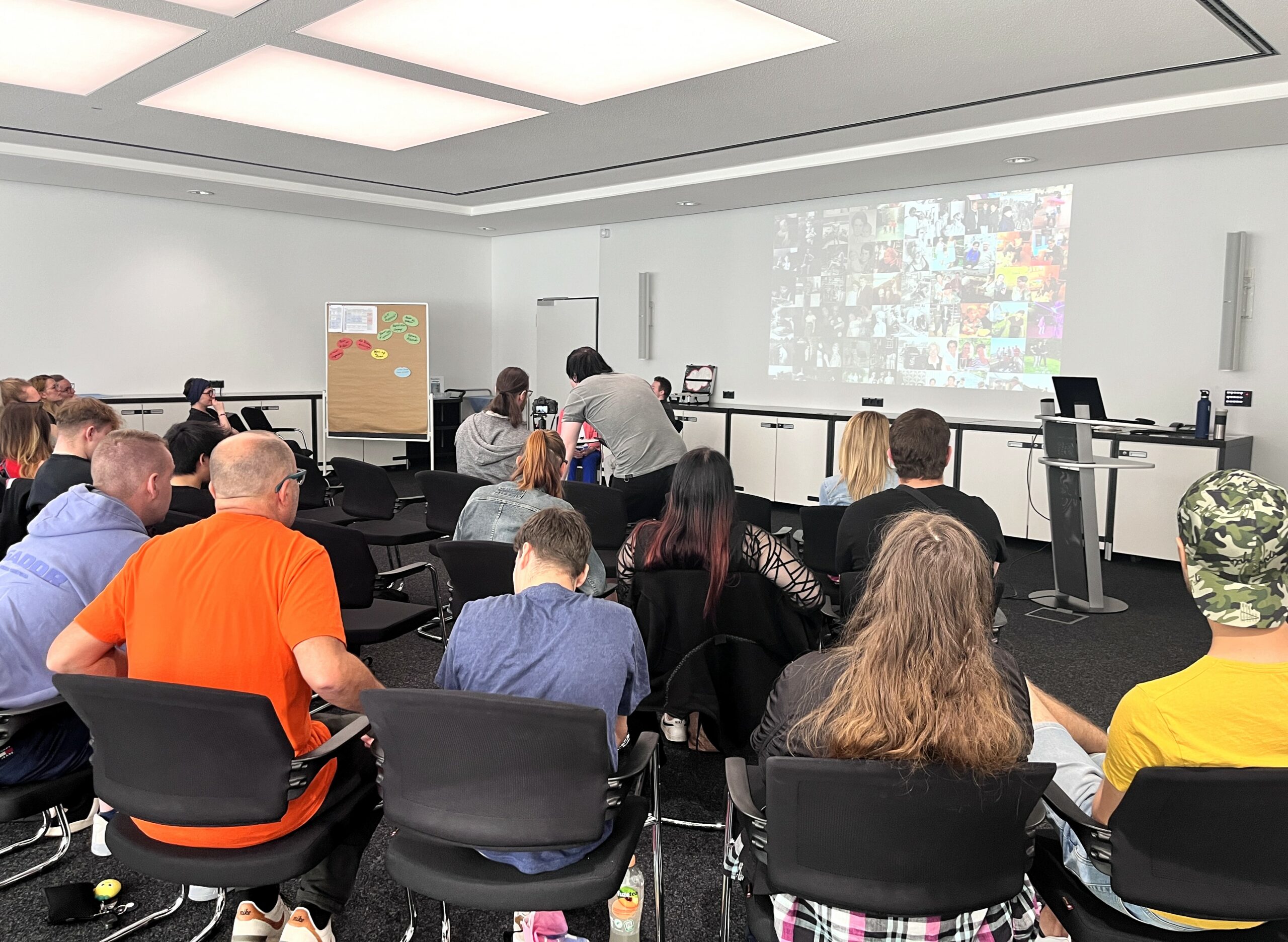 Dann kam endlich der große Moment und unsere Azubis präsentierten mit Stolz und auf kreativem Wege ihre Ergebnisse der Projektwoche in der Aula des BFW einem großen Publikum. Zahlreiche Mitarbeitende und auch Teilnehmende am BFW Leipzig ließen sich dies nicht entgehen.