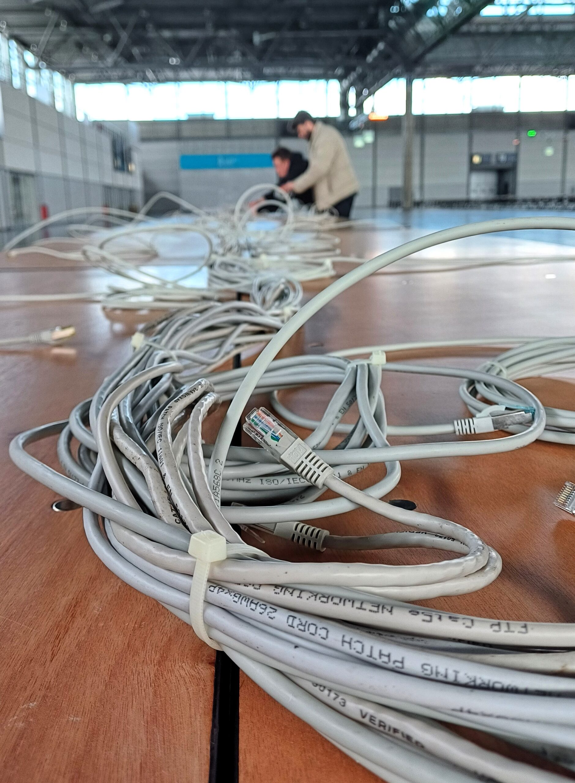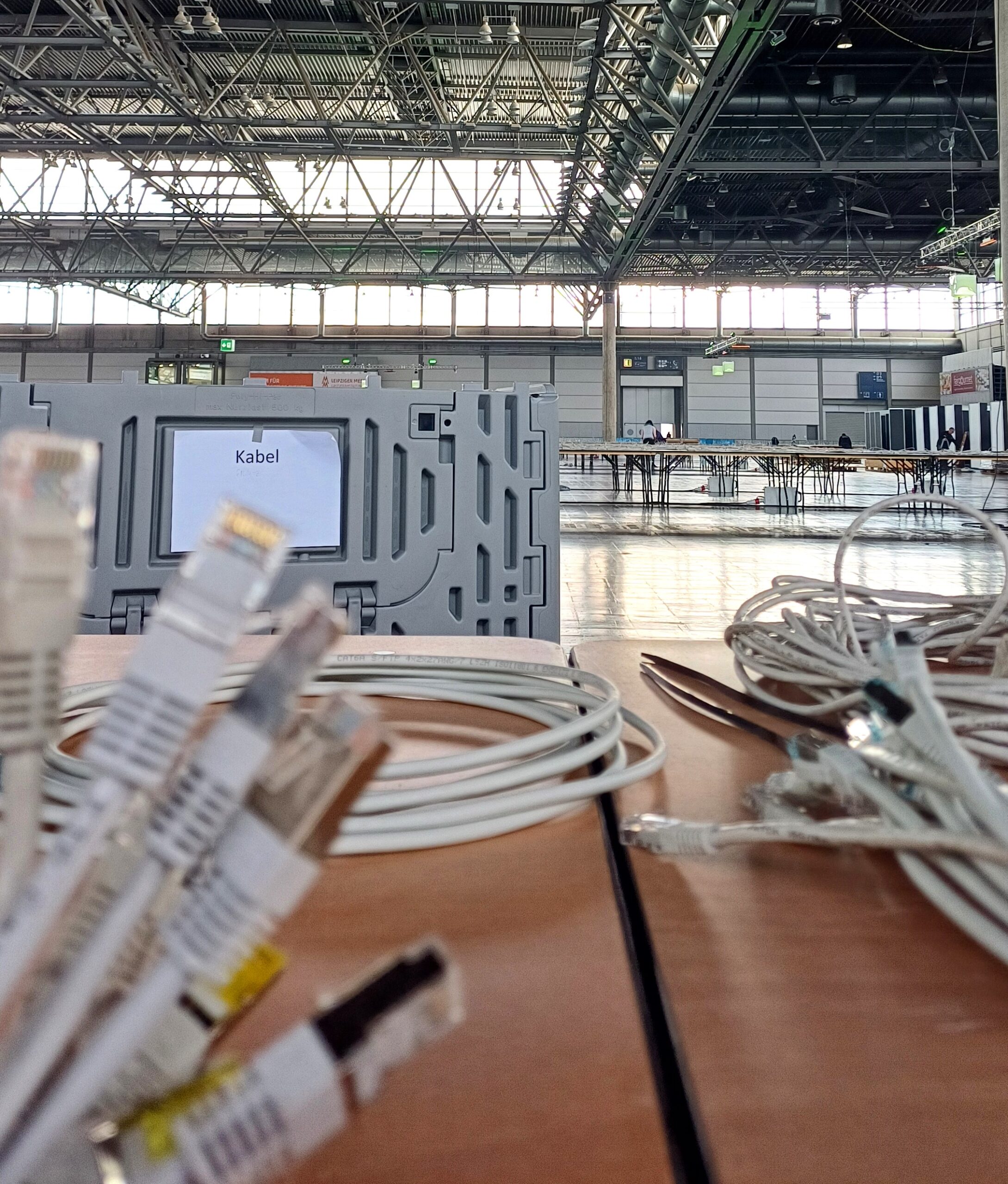Hierfür war auch die tatkräftige Unterstützung der angehenden Fachinformatiker für Systemintegration/Anwendungsentwicklung (m/w/d) des BFW Leipzig gefragt. Bereits drei Tage vor dem offiziellen Beginn der Messe rückten die IT-Ausbilder Stephan Gerlach, Hans Wessalowski und Stephanie Hieke mit 50 Teilnehmern und Teilnehmerinnen des BFW Leipzig sowie der Inklusionsgestützten Erstausbildung (IngE) des BTZ am BFW in Leipzig in den LAN-Bereich ein.
